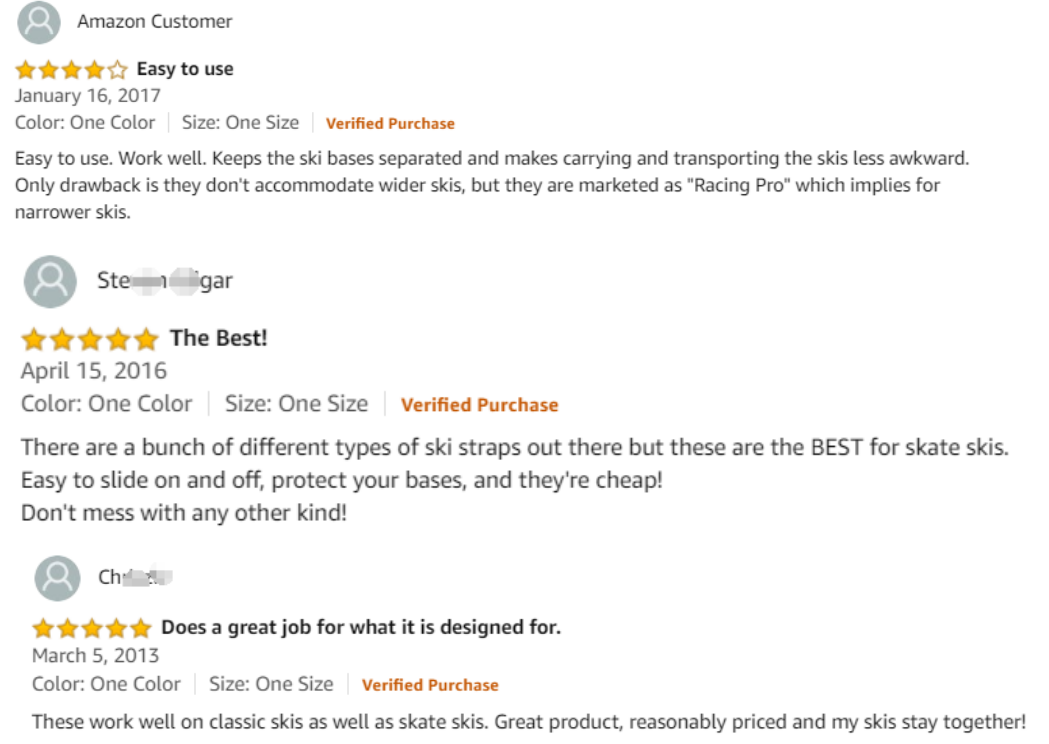 Our Clients sold the ski straps on Amazon.Below are the feedbacks.